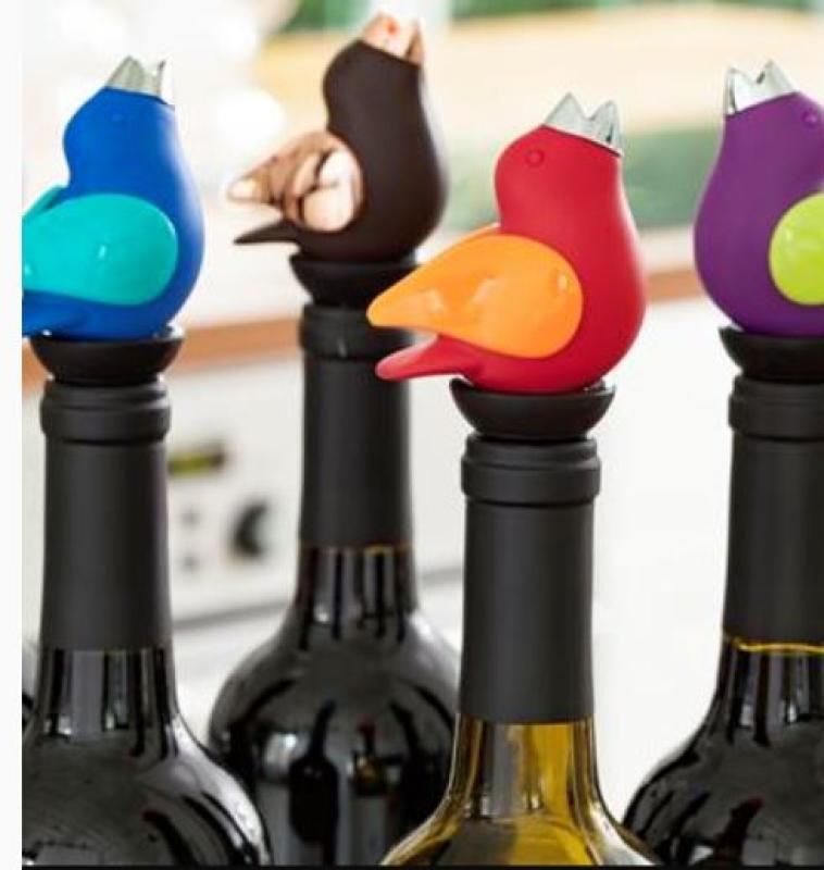 This little bird chirps while you serve your favorite wine. Made from stainless steel and silicone, the ChirpyTopâ„¢ Wine Pourer features hidden whistles that create the cute chirp. Plus, the ChirpyTopâ„¢ Wine Pourer is designed for a drip free pour, so your table stays tidy. Hand wash recommended. Measures 5" x 3" x 2".