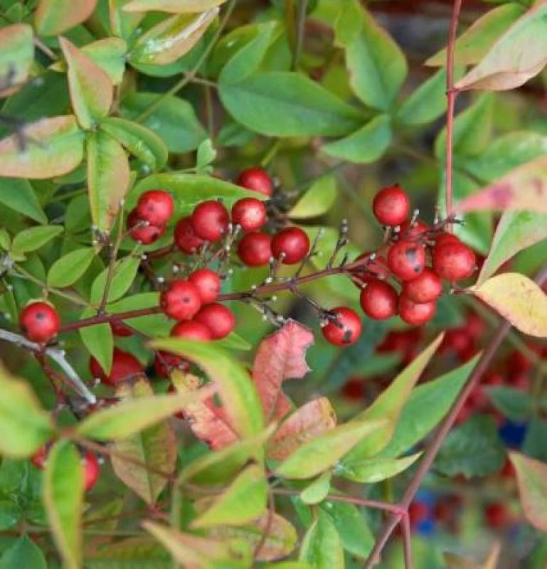 Green Foliage with White Flowers followed by Red Berries and Red to Burgundy Foliage in the Fall
