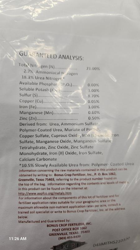 Smith’s Premium Lawn Fertilizer is formulated to the exact recommendation of Texas A&M for lawns in this area. Plus, half the bag is a slow-release type, so it won’t burn, and the effects will last longer. This is also a great fertilizer for your trees and shrubs.